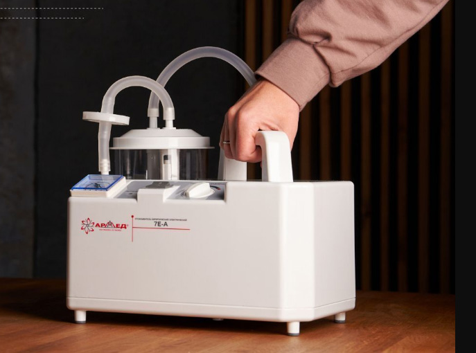 Хирургический электрический отсасыватель Армед 7Е-А используется для отсасывания крови, гноя и различных жидкостей, частиц тканей и газов из операционных ран и других полостей во время и после операций, широко используется в перевязочных. Устройство имеет небольшие габариты, имеет удобную ручку для переноски. Отсасыватель отличается наличием антибактериального фильтра и емкостью-сборником. Емкость-сборник оснащена клапаном, который защищает отсасыватель от перелива собираемой жидкости. Скорость забора жидкости настраивается с помощью удобной ручкой-регулятором.